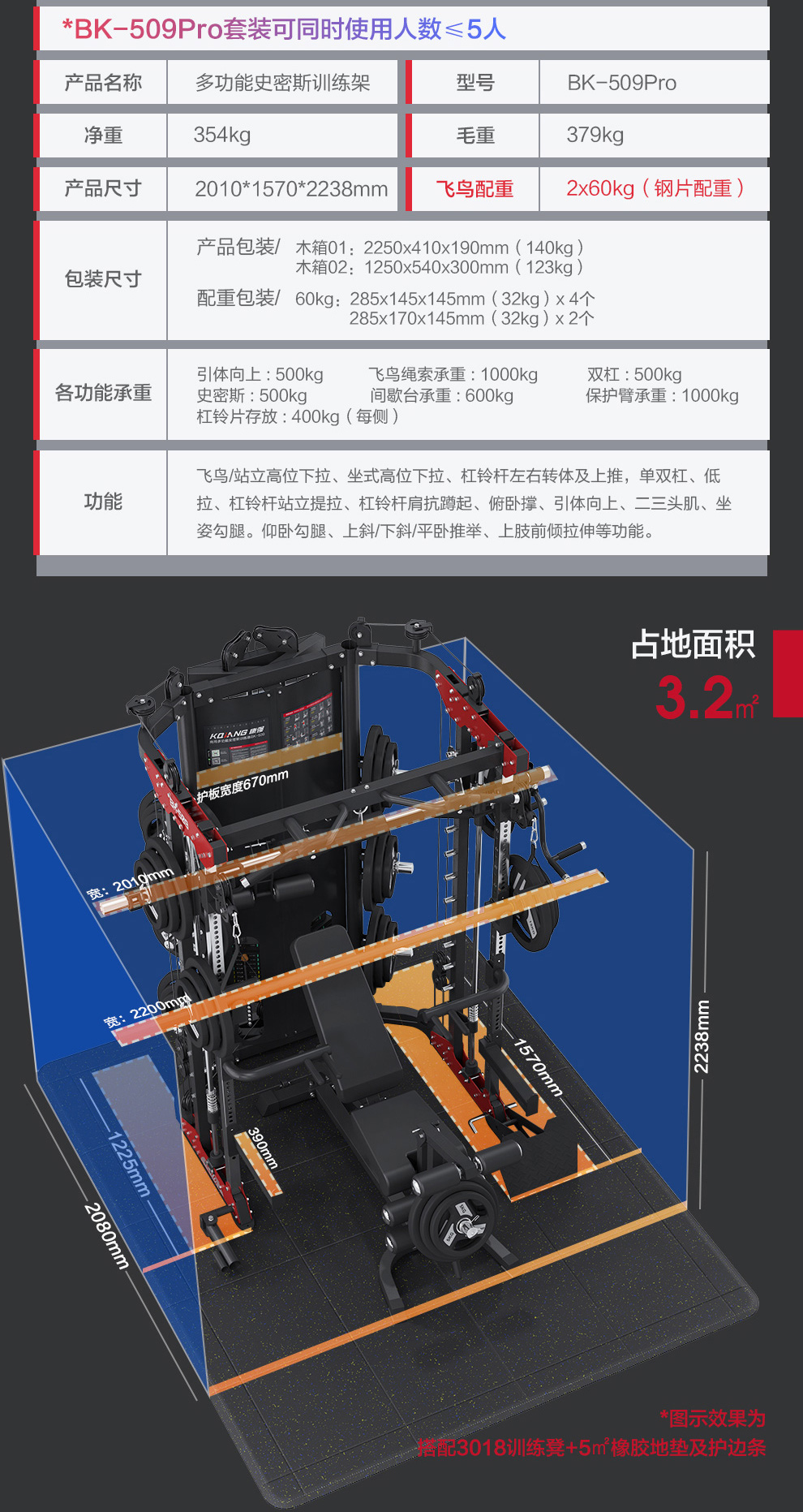 333体育BK509PRO专业版 多功能史密斯机 综合训练器健身器材龙门架举重床深蹲卧推