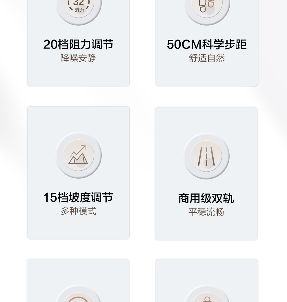 | 控制面板:LED显示屏 | 步幅长度:500*220mm | 阻力调节:20档 | 最大承重:150KG |