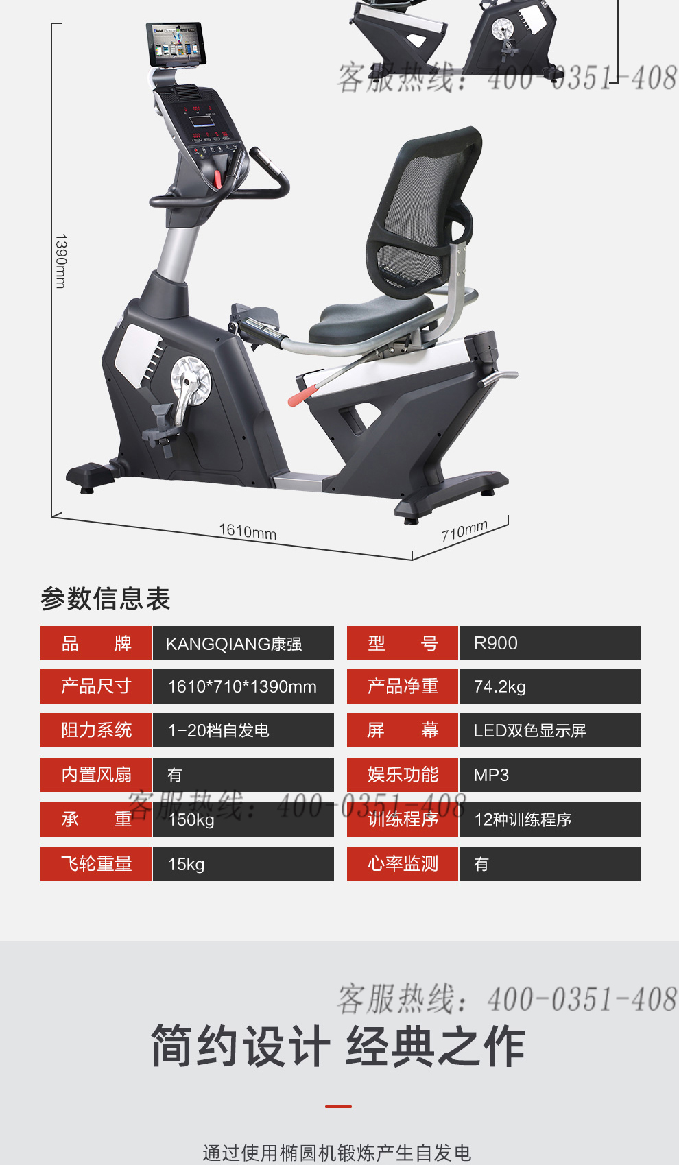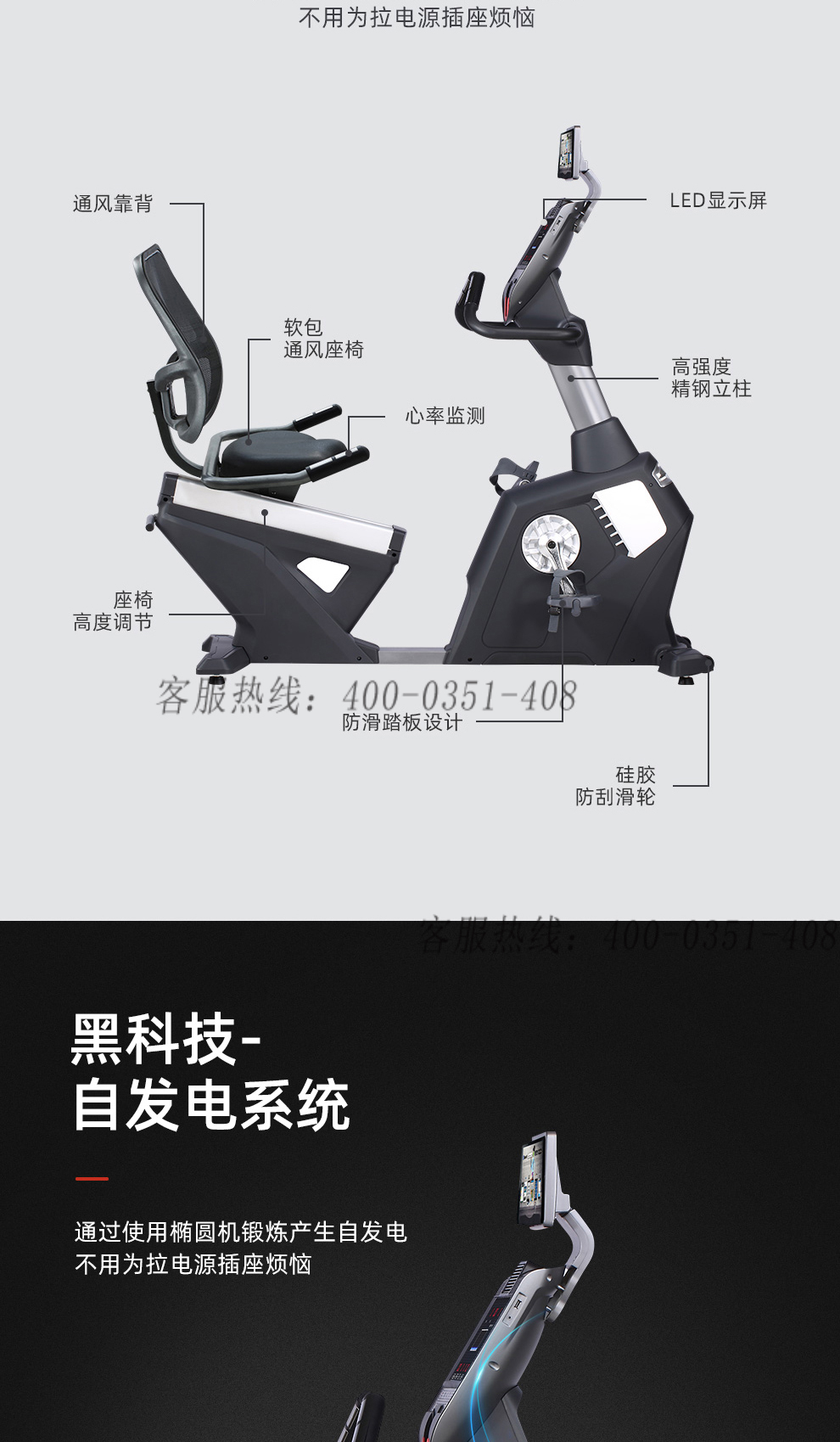 333体育商用卧式单车CR900磁控车自发电健身车健身房专用