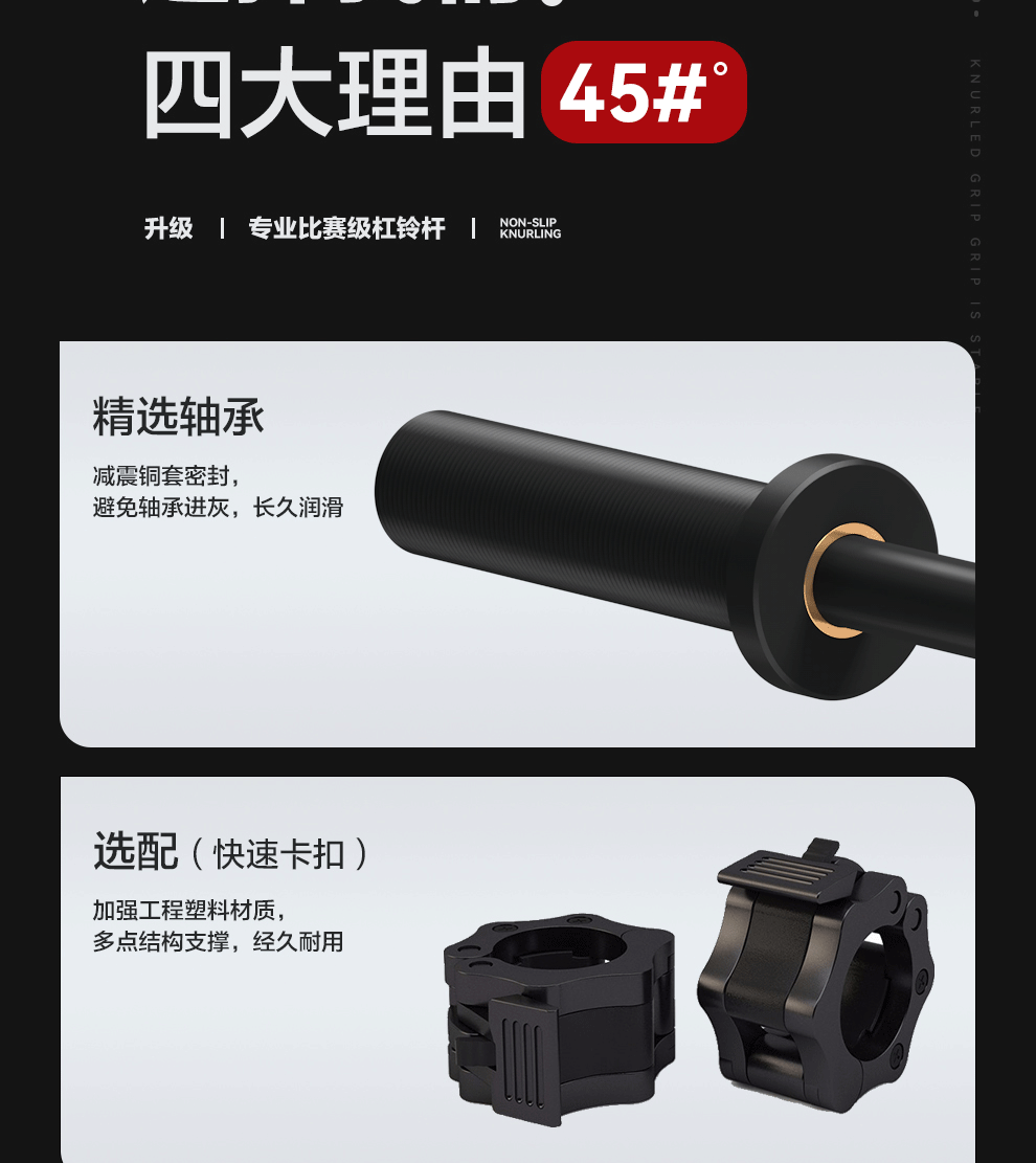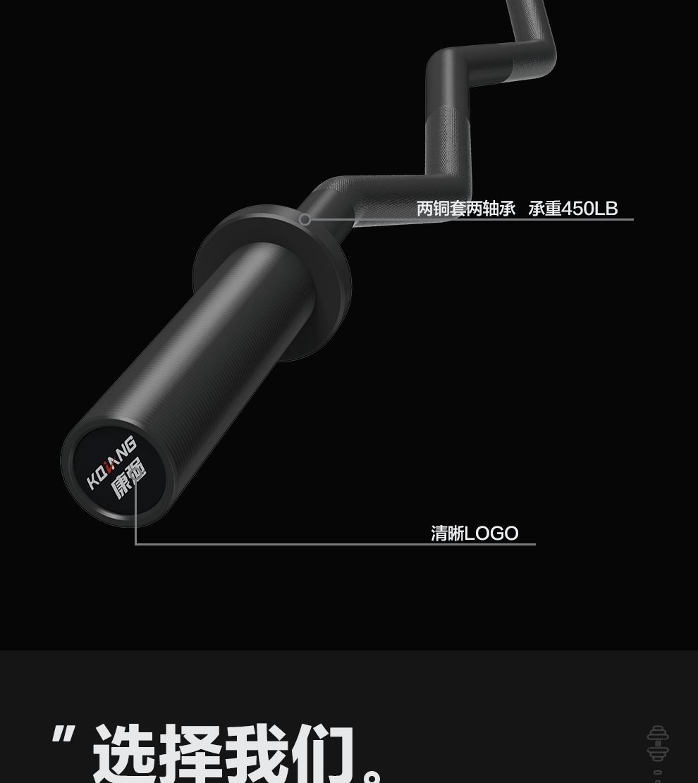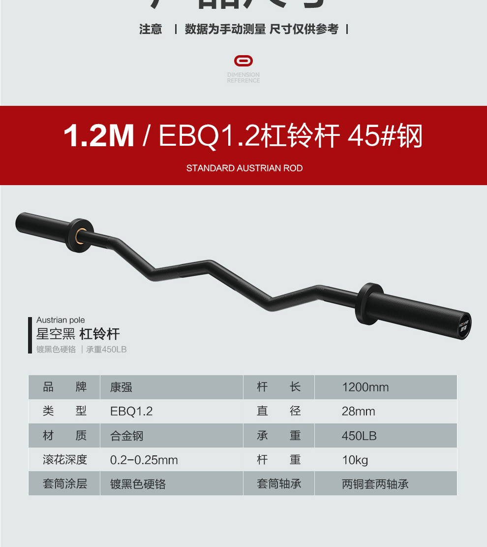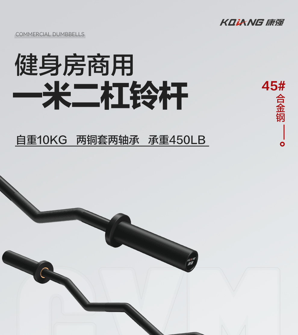 333体育1.2M曲奥杆两铜套轴承重10KG举重杠铃杆卧推健身器材EBQ1.2