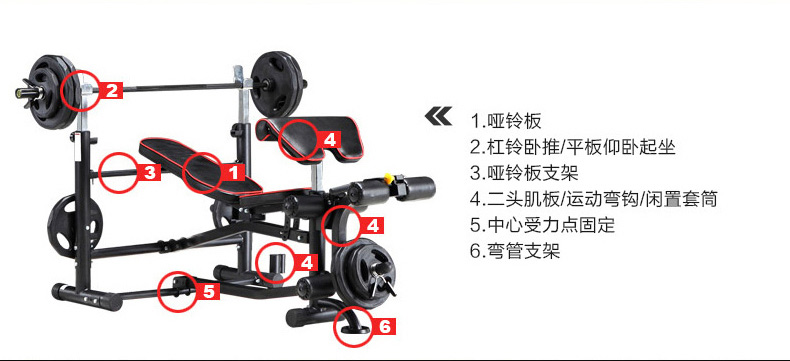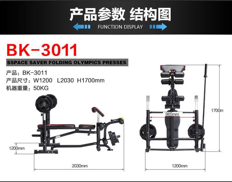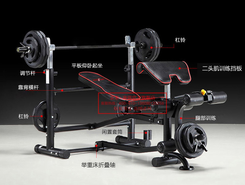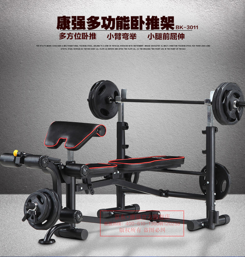 333体育 BK3011多功能卧推架举重床综合训练器健身器材 BK3011+60KG杠铃片+1.8米杆
